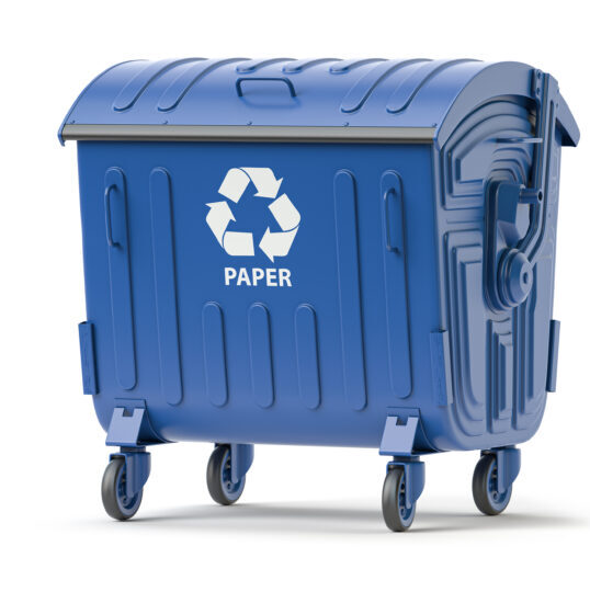Paper squeezer container and a garbage press machine recycle cardboard into reusable material bales